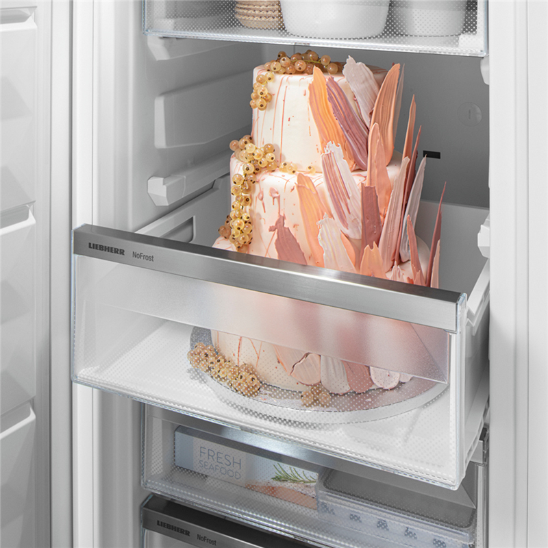 Ваш холодильник должен быть мощным и удобным и в то же время экологичным? Тогда Liebherr создан для вас. Наша технология BluPerformance делает его универсальным: он обеспечивает дополнительный объём и хладопроизводительность, но потребляет при этом очень мало энергии. И прислушайтесь: вы почти ничего не слышите. Потому что ваш Liebherr работает очень тихо, несмотря на свою высокую производительность. Что бы вы хотели слышать в своей кухне? Звук от жарки, смех, музыку? Одно точно нет: ваш холодильник. Он такой спокойный, что его почти не слышно. Его секрет в его современном внутреннем мире. Все компоненты согласованы друг с другом технически и механически. Звучит хорошо, правда? В вашем Liebherr вы разместите даже очень крупные продукты: потому что индейке размера XL или многоярусному торту- мороженому нужно просто больше места. Для таких случаев в вашем Liebherr есть SpaceBox: благодаря большой высоте в 250 мм он предлагает много дополнительного места даже для замороженных продуктов большого размера. И это поможет вам в гибком хранении запасов.
