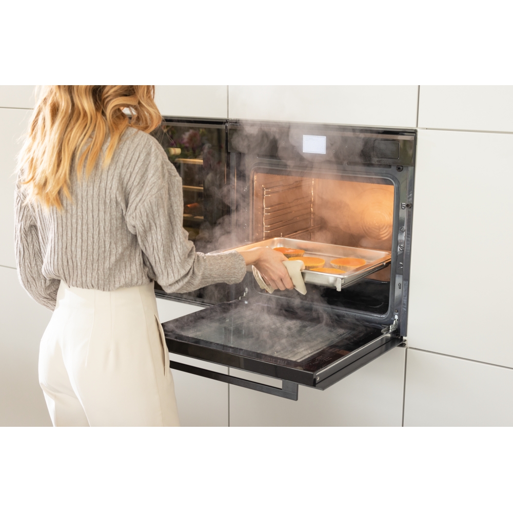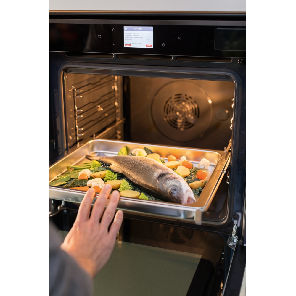 2 решетки, 1 противень, 1 перфорированный противень для пара, телескопические направляющие (1 уровень)