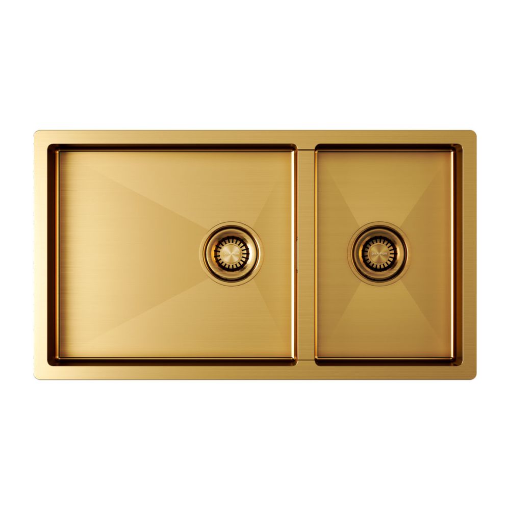 PVD покрытие в цветах воронёная сталь / брашированное золото (GM / BG) на внешней поверхности мойки для кухни ALLER 78/2S UNI – это особый метод напыления, путём прямой конденсации пара наносимого материала, который позволяет поверхности мойки быть особенно устойчивой к появлению царапин и истиранию. Такое покрытие является не только декоративным, но и защитным слоем, оно плотно и равномерно прилегает к основе, не содержит микротрещин.